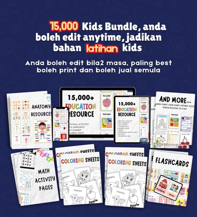 15K Kids Bundle + 30 Modul Step by Step, Bina 10K dengan Buku Cerita Kanak2 + Siap Template Web